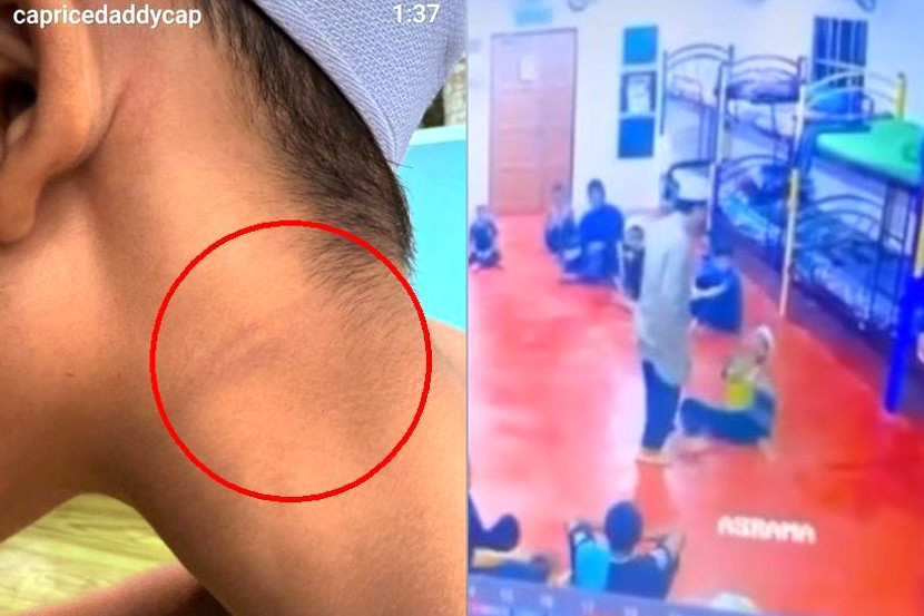 Tambahan pula, mangsa dilihat mengelupur kesakitan selepas beberapa kali disebat di tubuh termasuk leher oleh individu yang didakwa warden pusat tahfiz berkenaan.