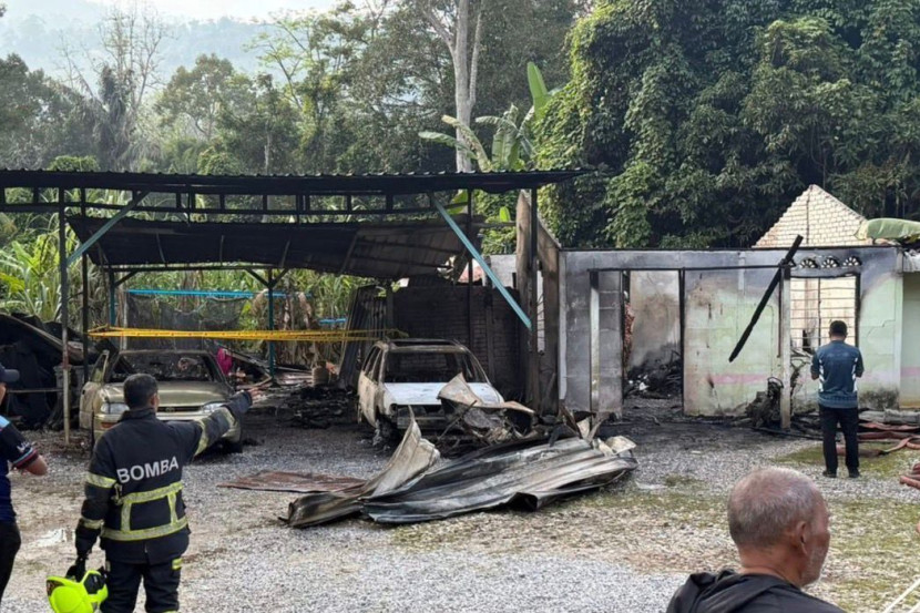 Lima sekeluarga ditemukan dalam keadaan menyayat hati akibat kebakaran rumah di Kampung Pamah Kulat pada awal pagi Khamis. -Foto Bernama