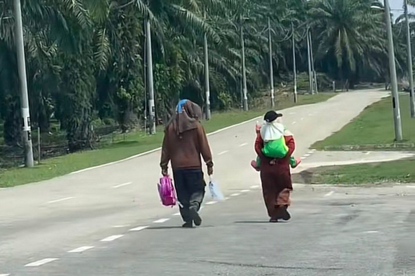 RAKAMAN video memaparkan sepasang suami isteri berjalan kaki di bawah cuaca panas terik bersama anak mereka menarik perhatian ramai selepas dikongsikan seorang wanita di media sosial.Menerusi perkongsian tersebut, Eliyana Said menceritakan situasi yang dilihatnya ketika keluar makan tengah hari beberapa bulan lalu, sebelum Ramadan. Ketika melalui simpang menuju ke kawasan ladang sawit berhampiran Kampus Satelit CIAST-ADTEC Jerantut, Pahang, dia melihat pasangan suami isteri itu berjalan kaki sambil salah seorang mendukung anak mereka di belakang badan."Masuk kereta semula lepas ambil kad matrik pelajar dekat pengawal keselamatan, saya nampak keluarga ini dah berjalan ke depan. Dalam hati terfikir ni mesti motor rosak sebab sebelum masuk simpang tu, ada motor parkir tepi jalan."Bayangkan bawa anak kecil lepas tu ayah dia bawa ais tapi sudah separuh cair. Nak bagi tumpang masuk ladang sawit tapi saya takut sebab jalan pun tak comey (tidak berturap)."Apa-apa pun, semoga adik tu berjaya dunia akhirat. Sudah besar nanti, sekolah pandai-pandai dan kerja baik-baik. Berbaktilah pada orang tuamu," tulis Eliyana pada video dimuat naik di TikTok [Tonton Video].Hantaran yang tular tersebut kemudiannya meraih perhatian ramai sehingga keluarga yang dirakam berjaya dikesan dan menerima bantuan daripada orang ramai.Perkara itu dijelaskan wanita yang dirakam dalam video tersebut, menceritakan situasi sebenar yang berlaku pada hari kejadian dalam hantaran kedua dibuat Eliyana."Masa tu saya balik dari tempat kerja, tiba-tiba motor rosak tengah jalan. Anak saya pula sekolah dan tak ada jalan lain. Terpaksa kami berjalan kaki ambil dia."Saya duduk dalam kebun tu. Jauh sikit la dari ADTEC. Jalan masuk kebun pun tak okay. Batu banyak. Biasa la jalan kebun. Tak sangka pula tengok video tu. "Terima kasih banyak-banyak dik kerana kamu ramai orang bantu akak. Semoga sihat selalu. Jadi anak solehah yang taat kepada orang tua mereka. Allah balas semua jasa kamu nanti," katanya.Namun, dalam hantaran tersebut wanita berkenaan tidak menjelaskan jenis bantuan yang diterima.