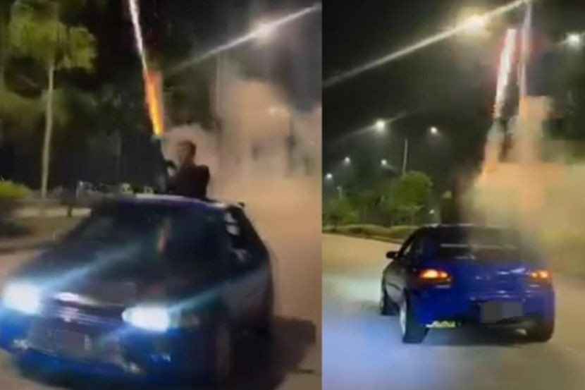 EMPAT individu termasuk seorang wanita ditahan selepas dipercayai menyalakan bunga api dari sunroof kereta yang sedang bergerak dalam kejadian di sekitar Shah Alam, Selangor.Ketua Polis Daerah Shah Alam, Asisten Komisioner Ramsay Embol berkata, tiga lelaki dan seorang wanita berusia antara 21 hingga 28 tahun ditahan pada Sabtu di sekitar Shah Alam dan Sungai Buloh. Menurutnya, pihak polis turut merampas sebuah kereta, telefon bimbit serta bunga api yang dipercayai digunakan dalam kejadian berkenaan.“Kesemua suspek direman sehingga Selasa bagi membantu siasatan,” katanya dalam satu kenyataan.Sebelum ini, tular satu video di media sosial memaparkan seorang lelaki menyalakan bunga api dari sebuah kenderaan yang sedang bergerak di kawasan Bukit Jelutong.Hasil siasatan mendapati kejadian itu berlaku di Elmina Rainforest di sepanjang Persiaran Ficus, Seksyen U15.