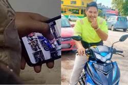 Arwah Amirul Hafiz bersama motosikal yang dihadiahkan isterinya pada 25 November 2022. -Gambar Facebook Nor Nadia