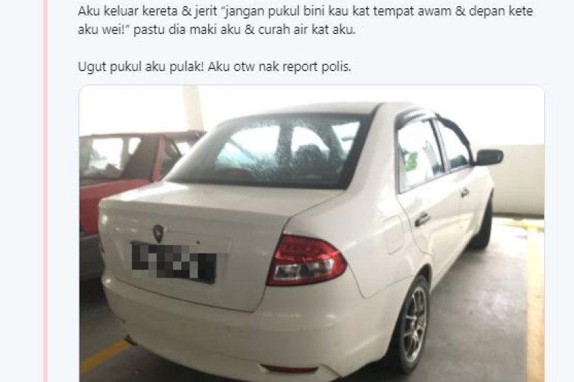 "Kejadian berlaku sekitar 6.30 petang, saya dengan anak kecil saya dalam kereta di ruangan parkir. Masa tu agak lengang mungkin kerana ramai dah bercuti.