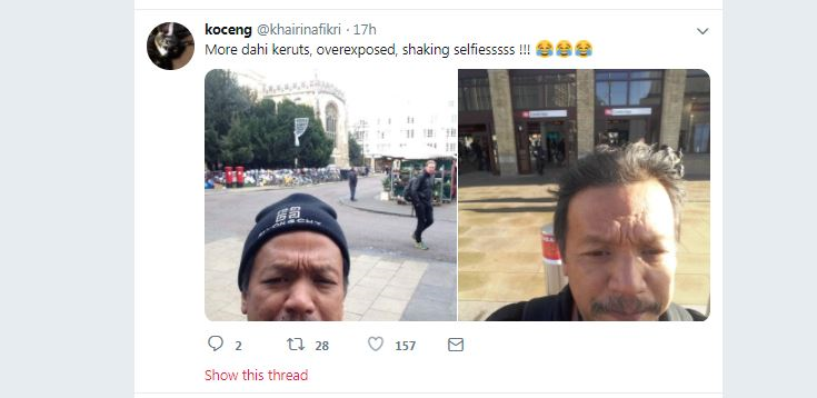 "Aaa kesiannya pakcik. Tapi papa saya pun macam tu jugak. Pelik dan berkerut muka dia selfie," tulis @nazaeqin.