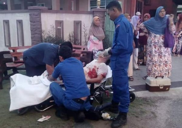 “Saya baru hendak masuk rumah apabila tiba-tiba saya terpelanting disondol. Haiwan tu datang dari belakang. Saya nak bangun semula tetapi babi tu sondol sekali lagi. Jadi saya sabit mata dia dan terus lari masuk pagar rumah,” katanya.