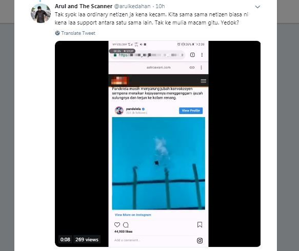 Malah, segelintir netizen turut bertindak melampau apabila melemparkan kata-kata kesat buat pemuda tersebut.