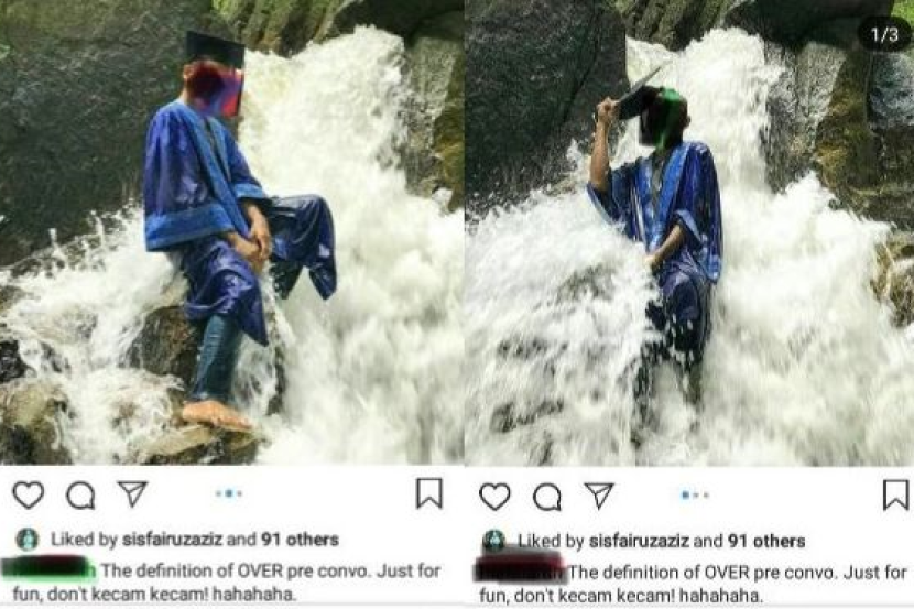 PETALING JAYA: Tindakan seorang lelaki dipercayai pelajar sebuah institusi pengajian tinggi (IPT) memuat naik foto 'pre-convo' di dalam sungai ternyata mengundang kecaman netizen.
