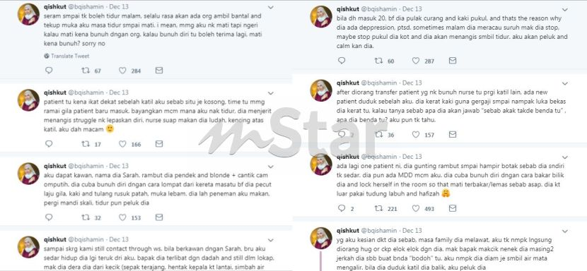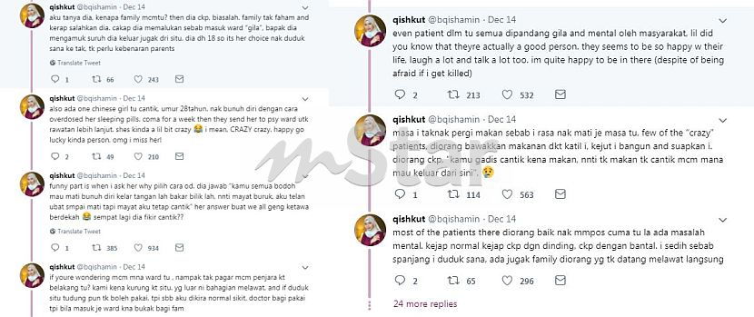 Pengalamannya dimasukkan ke wad psikiatri selama hampir sebulan menjadi tular di Twitter sehingga ia diulang kicau lebih 10,000 kali.