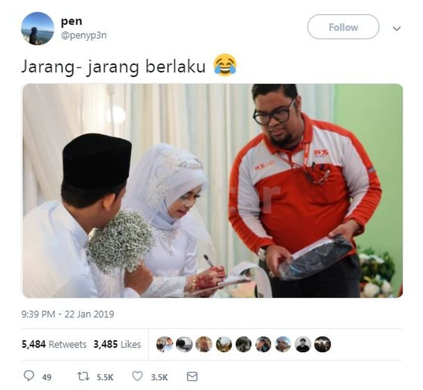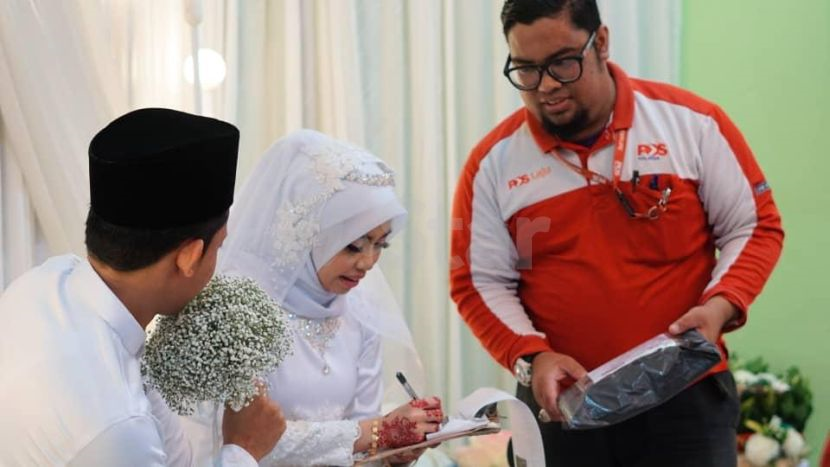 Kehadiran posmen yang tidak dijangka sejurus akad nikah Sabtu lalu. FOTO: @7ulusview