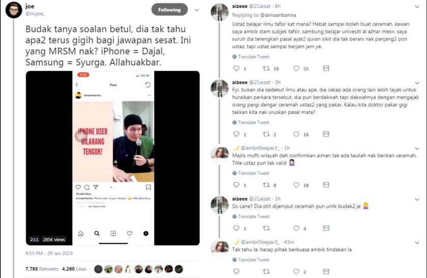 Video berdurasi dua minit 20 saat itu mengundang kecaman netizen apabila kenyataan Aimaan dikatakan menyimpang dan tidak menjawab persoalan tersebut.
