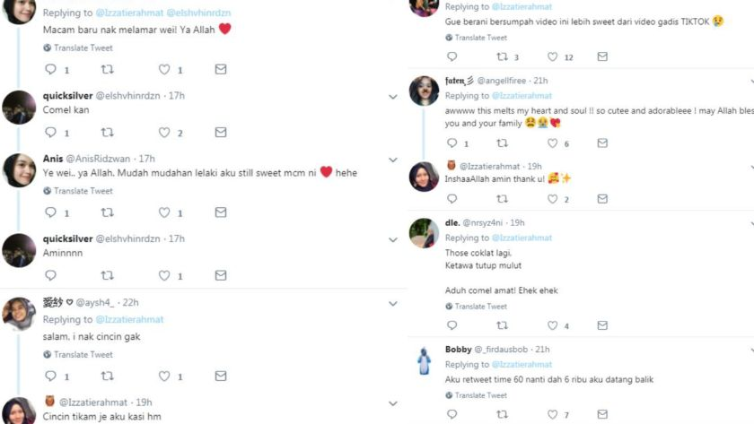 Video yang dimuat naik Izzatie mendapat perhatian di laman Twitter miliknya.
