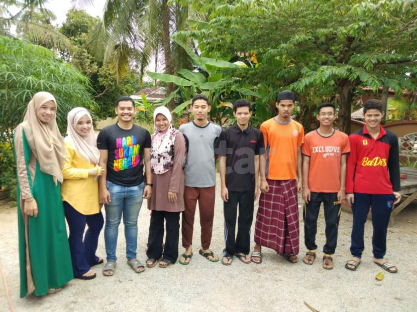 Faiz (tiga, kiri) bersama lapan orang adik beradiknya.