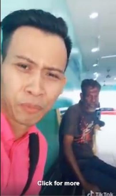 SEORANG lelaki melalui akaun TikTok miliknya yang menggunakan nama 'Teh Tarik' dilihat sedang duduk di bangku sebuah kedai dobi dan di belakangnya kelihatan seorang lelaki tua.