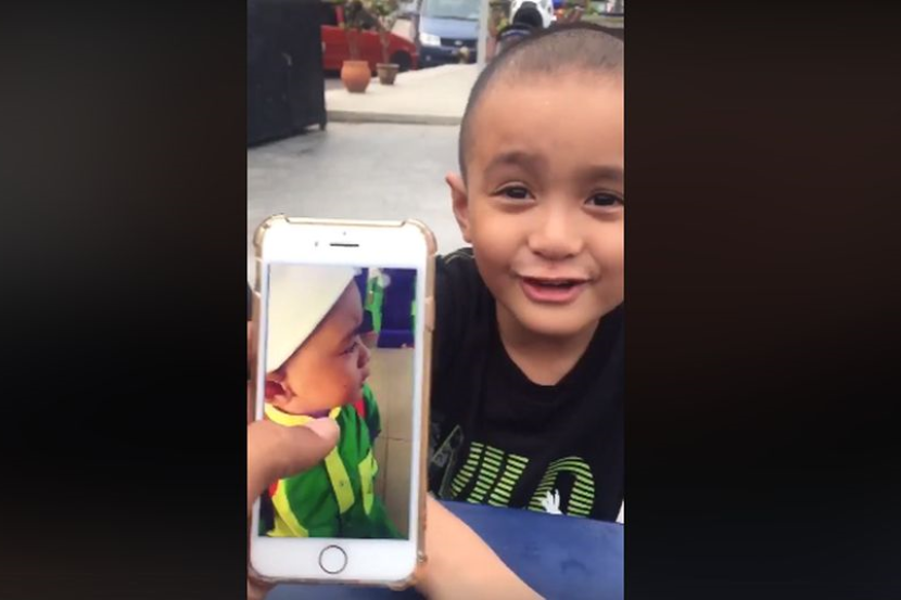 Video berdurasi kira-kira 1 minit dan 36 saat itu dimulakan dengan rakaman yang tular pada Januari lalu dimainkan semula di hadapan kanak-kanak tersebut, dan kendengaran suara bertanyakan sebab dia menangis ketika itu.
