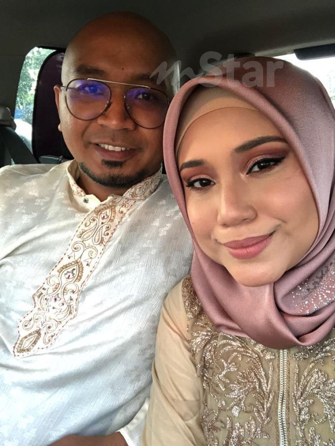 Muhammad Sharizzul (kiri) menjadi ejen menjual kek lapis Sarawak bersama isterinya, Nur Farhani.