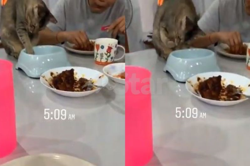 Menerusi video berdurasi 10 saat itu, kucing comel yang dinamakan Kecik itu dilihat spontan menggunakan tangan kanannya menjamah makanan bersama Nur Hidayah dan keluarganya yang ketika itu sedang bersahur.