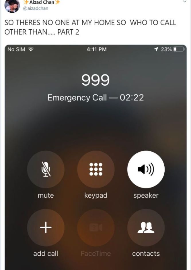 "Walaupun tanpa kad sim, saya masih boleh buat panggilan kecemasan. Panggilan dibuat pada pukul 4.11 petang dan bomba datang kira-kira 20 minit kemudian.