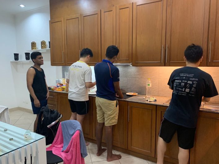 Rakan-rakan Farid turut membantu menyediakan juadah sahur.
