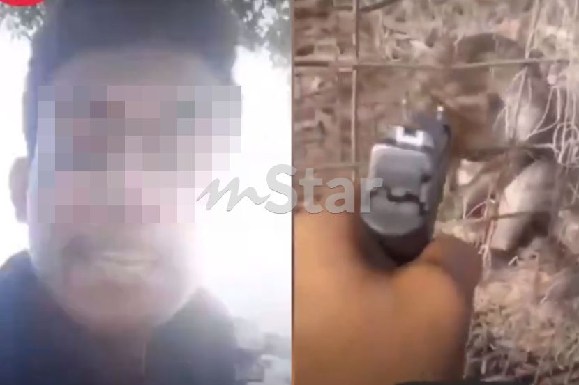 "Kalau kau tak cakap baby sayang, aku tembak kau. Satu, dua, tiga," kata lelaki itu sebelum melepaskan tembakan menggunakan sepucuk pistol kepada haiwan tersebut yang kemudian kelihatan terkulai layu.