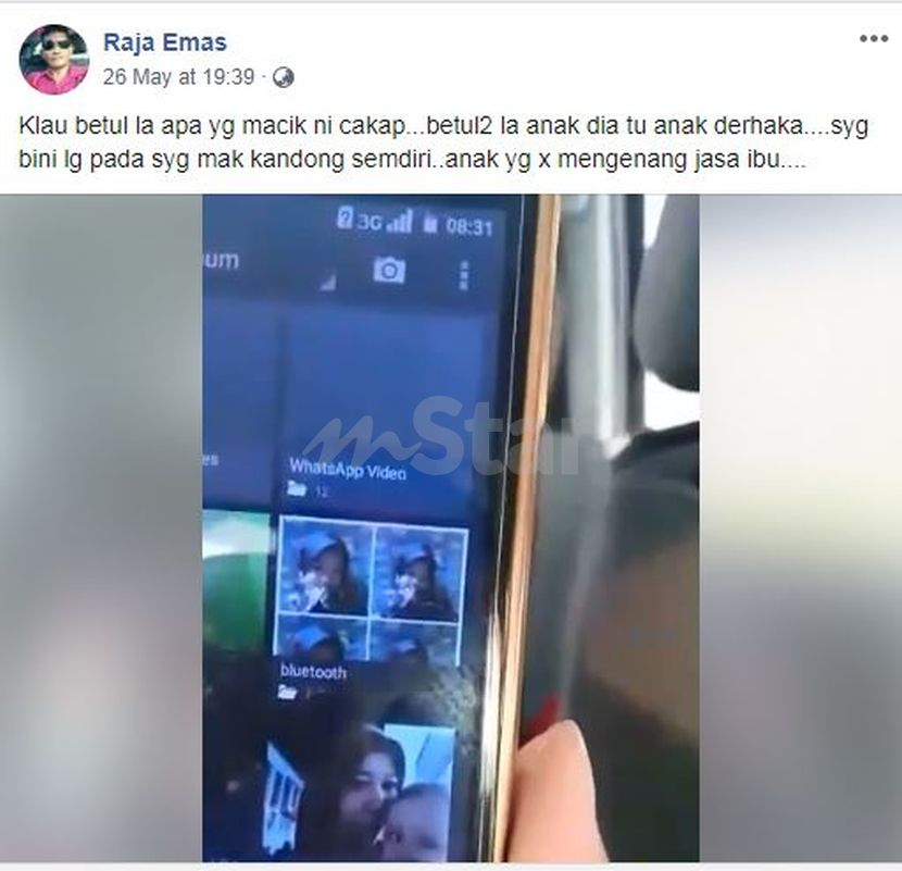 "Padahal bini dia yang pukul mak dia. Dia kata maknya pukul bini. Bini dia tu pembohong penipu," dakwa wanita itu.