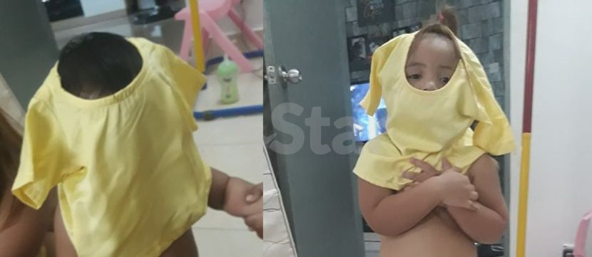 Lubang untuk memasukkan kepala dijahit terlalu kecil sehingga tidak boleh dipakai oleh anaknya.