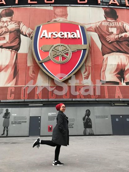 Nadia melakukan tour di Stadium Emirates pada tahun lalu.