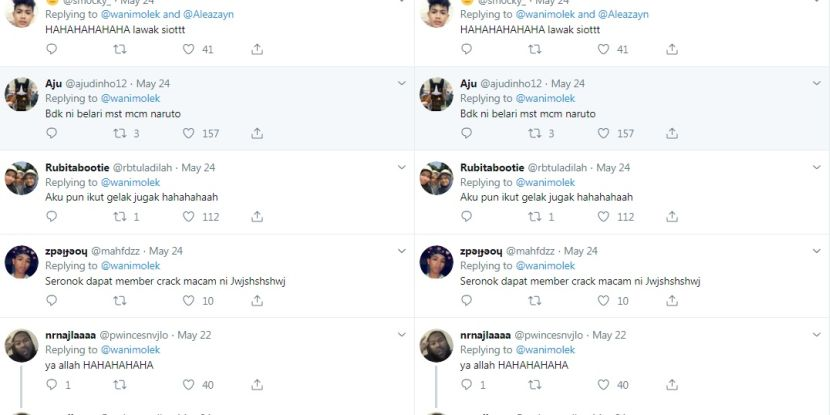 Rata-rata pengikut Twitter amat terhibur dengan video spontan dan dirakam secara tidak sengaja itu.