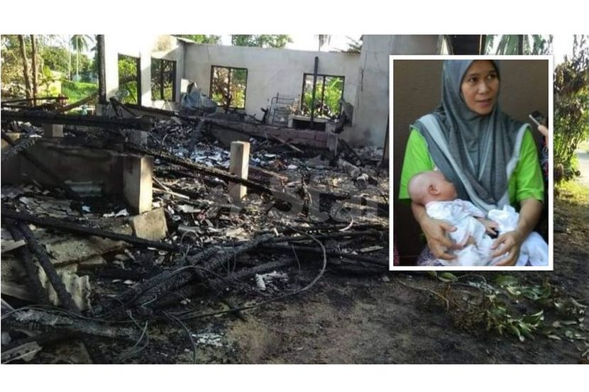 Sewaktu kejadian, Noor Afiza Yusof, 40, sempat menyelamatkan diri bersama suami, Che Abdullah Che Su, 54, dan tujuh anak mereka termasuk bayi perempuan yang baru berusia 33 hari.