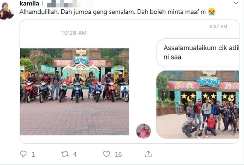 "Kebetulan pembonceng motosikal tu ada 'DM' saya tanya 'kenal tak gambar ni?'.