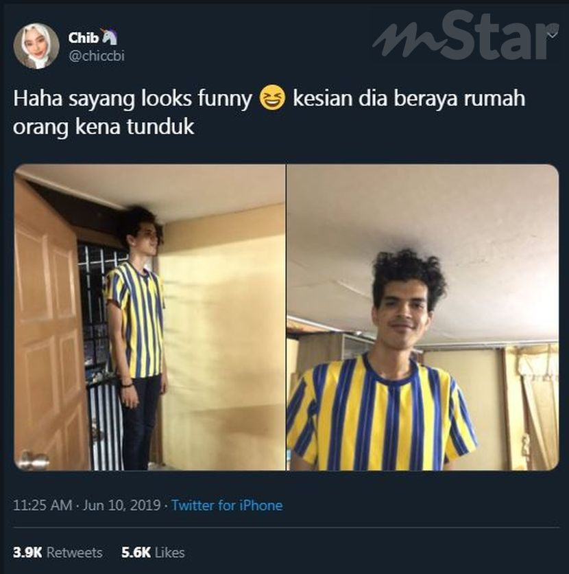 KETINGGIAN luar biasa yang dimiliki jejaka ini menarik perhatian ramai apabila gambarnya dikongsi di media sosial.