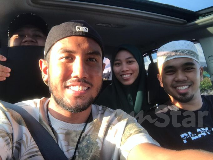 Farid (kanan) bersama rakan-rakan yang menemaninya untuk membuat permohonan pasport.