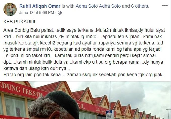 "Mula-mula minta ikhlas, dia hulur kad ayat al-Quran... bila kita pun hulur ikhlas, dia minta lagi RM20.