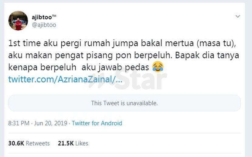 Dalam pada itu, perkongsian Rahazif di Twitter menarik perhatian ramai apabila posting miliknya menerima lebih 30,000 ulang kicau (Retweet).