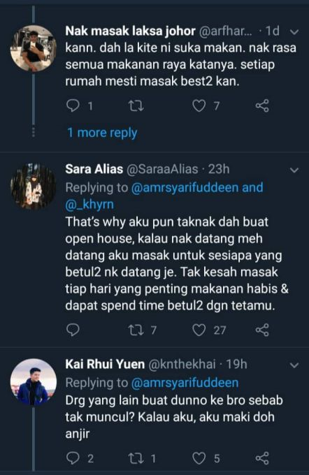"Saya post di Twitter hanya sekadar luahan perasaan sahaja. Sebenarnya saya sangat jarang buat rumah terbuka dan tahun ini saya rasa teruja nak buat.