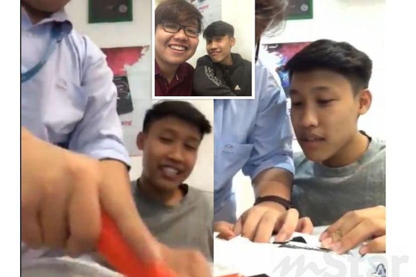 Paling menarik perhatian netizen tentunya wajah selamba jejaka berusia 20 tahun itu yang kelihatan tenang biarpun baju berharga RM150 itu sudah terkoyak akibat plastik bungkusan ditoreh oleh rakannya dengan pisau.