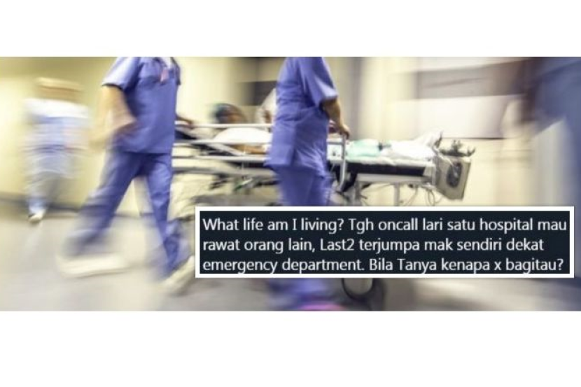 Dalam kejadian pada Selasa malam, pengawai perubatan yang hanya mahu dikenali sebagai Syafiq itu berkata, dia terkejut apabila melihat ibunya ke hospital ditemani ibu saudaranya untuk mendapatkan rawatan.