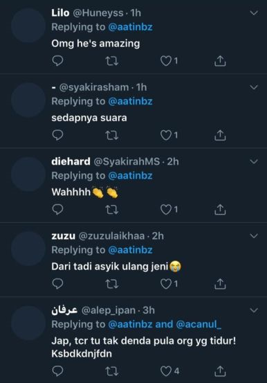 "Saya pun tak pernah ada Twitter. Jadi saya memang terkejut. Tak sangka ramai komen positif nyanyian saya. Terima kasih semua," katanya.