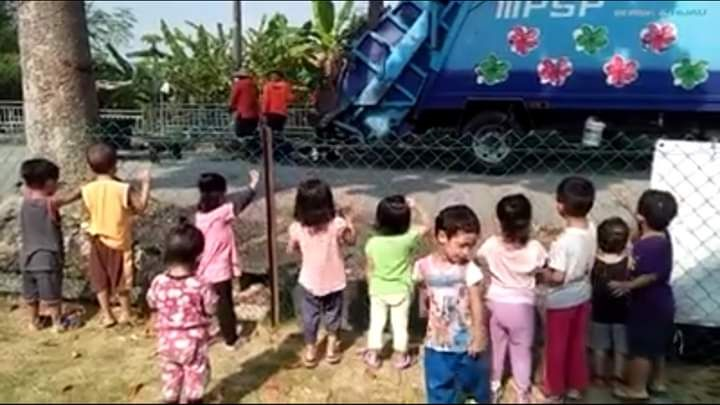 Anak-anak kecil kelihatan teruja setiap kali lori sampah muncul di kawasan taska berkenaan.
