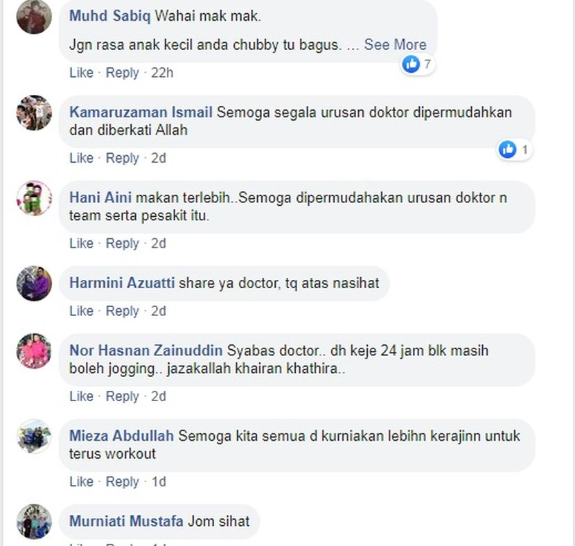 Dalam pada itu, rata-rata pelayar Facebook turut berkongsi posting Dr Nur Illyani itu dan meninggalkan komen-komen yang positif.
