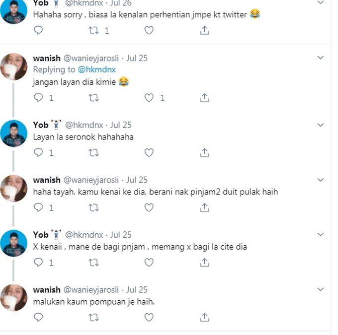"Saya tidak kenal dia secara personal, tahu nama dia dan tinggal di Johor Bahru sahaja. Kami banyak mesej di di Instagram dan 'imessage'. Tetapi apa yang buatkan saya rasa tak senang adalah, dia hanya mesej saya bila nak minta duit sahaja.