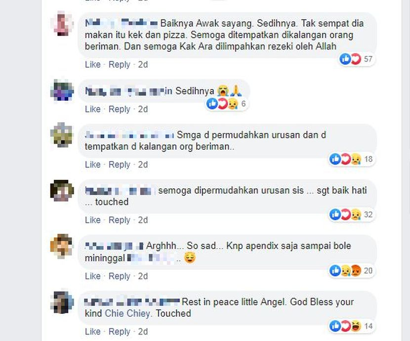 "Dia cuma sakit perut. Tapi daripada CT scan doktor cakap appendix bengkak. Saya curi-curi dengar kalau doktor pakar datang. Gadis ni tidak selera makan, jadi risau juga kalau dia tidak makan," tulis Chie Chiey.