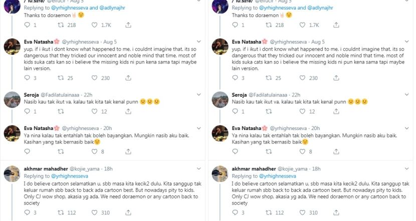 "Sekarang baru saya boleh fikir semua ni kerana dulu asyik teringatkan Doraemon," jelasnya yang kini sudah bekerja di sebuah syarikat swasta.