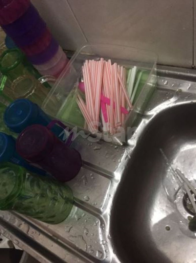“Sampai di sinki, saya terus terkejut apabila nampak ada bekas berisi straw plastik yang direndam dalam air sabun. Rasa nak marah pun ada.