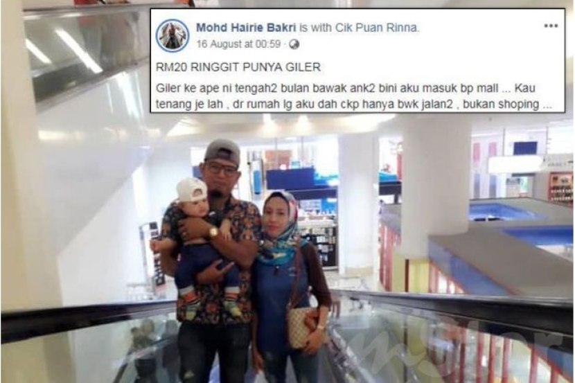 “HANYA berbekalkan RM20 saya bawa anak isteri pusing satu mall,” demikian kata seorang lelaki yang mana kisah dia sekeluarga tular di laman Facebook sejak Jumaat lalu.