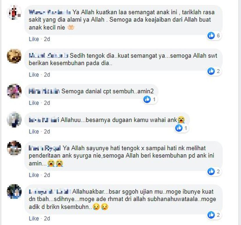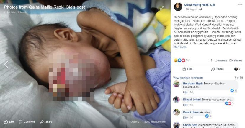 Terdahulu, kisah mengenai Daniel tular di laman Facebook. Malah, ramai netizen turut menzahirkan rasa sedih mereka dan mengharapkan anak kecil itu segera diberi kesembuhan.