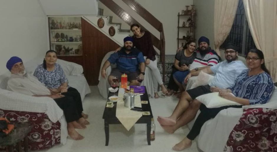 Charan Singh dan isteri, Pritam Kaur (belah kiri gambar) bersama Khushwant Singh dan isteri (tengah), adiknya Avnash Singh dan isteri (berserban biru,kanan) serta sepupu (hadapan kanan).