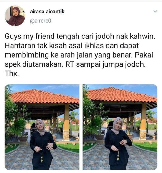 Posting cari jodoh yang dimuatnaik rakan Sarah menjadi tular di Twitter.