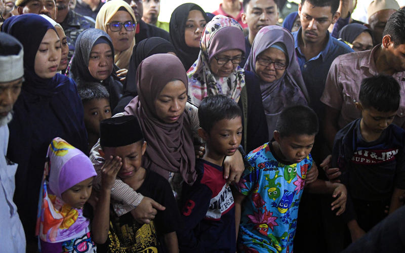 Ahli keluarga hadir untuk memberikan penghormatan terakhir sebelum jenazah dikebumikan di Tanah Perkuburan Islam Tambun, Ipoh pagi Khamis. Foto BERNAMA