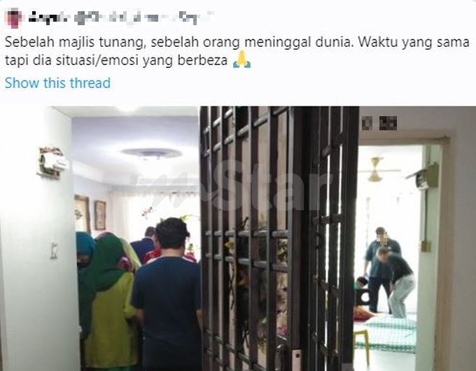 “Sebelah majlis tunang, sebelah orang meninggal dunia. Waktu yang sama tapi situasi dan emosi yang berbeza,” demikian menurut perkongsian seorang pemuda di laman sosial Twitter sehingga diulang kicau lebih 22,000 kali.