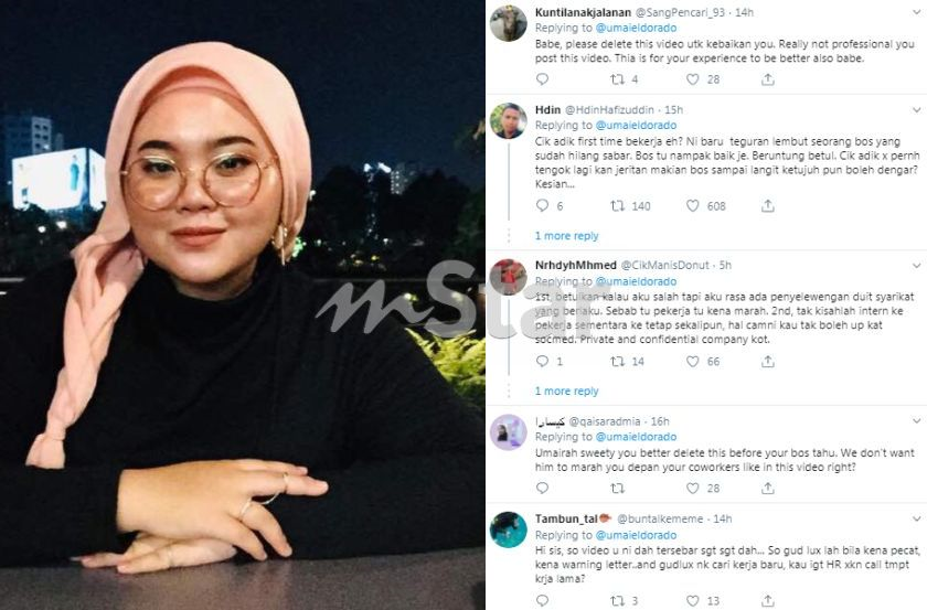 Umairah memuat naik video tersebut memandangkan pihak pengurusan syarikat sudah mengetahui perkara itu.