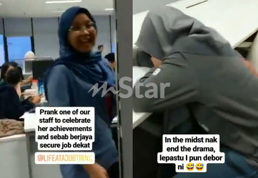 Pemilik akaun tersebut yang dikenali sebagai Umairah berkata video tersebut sebenarnya prank untuk meraikan Sofea yang juga staf baharu di syarikat tempat mereka bekerja.